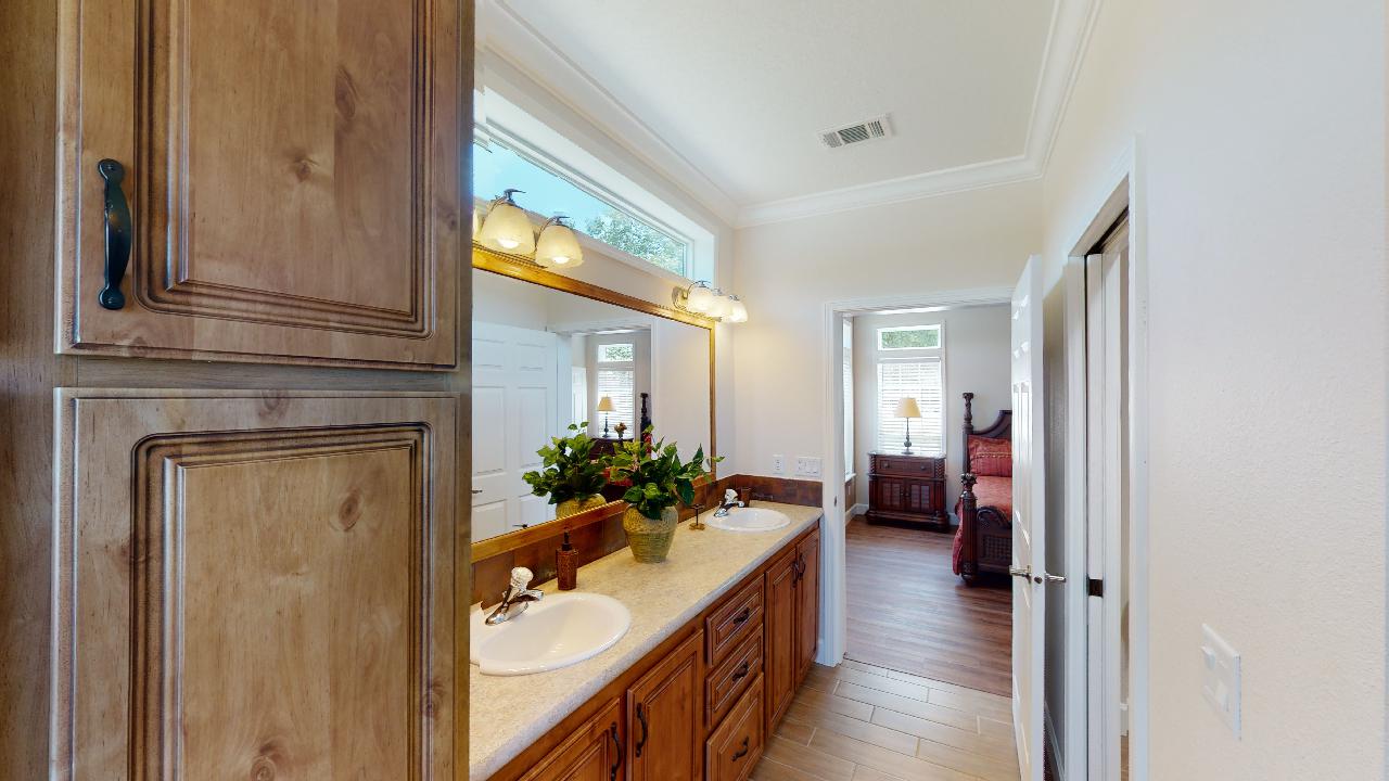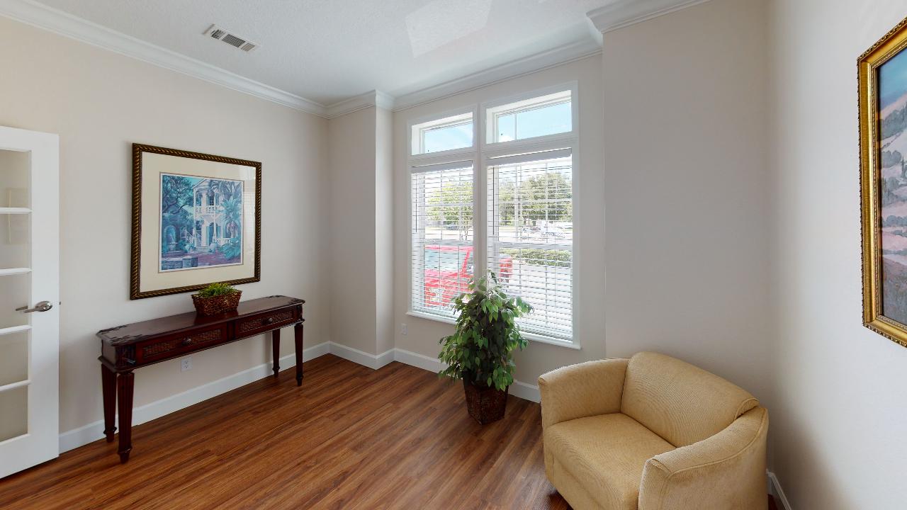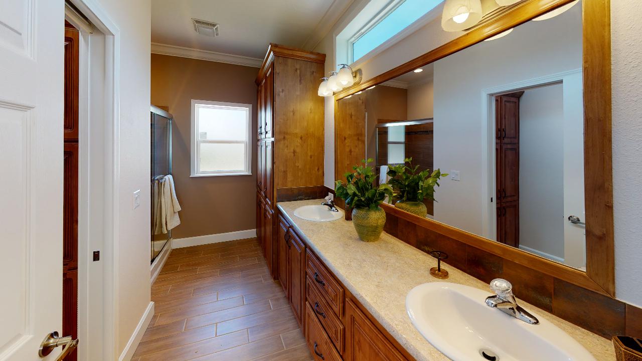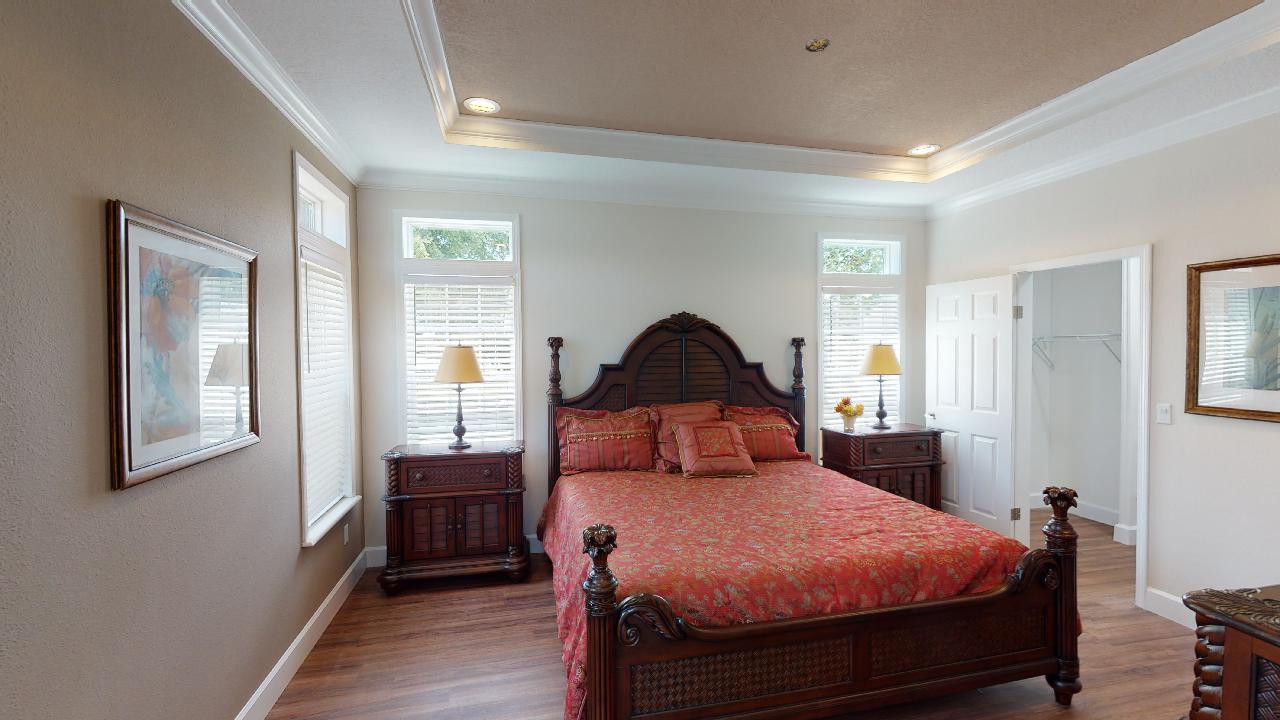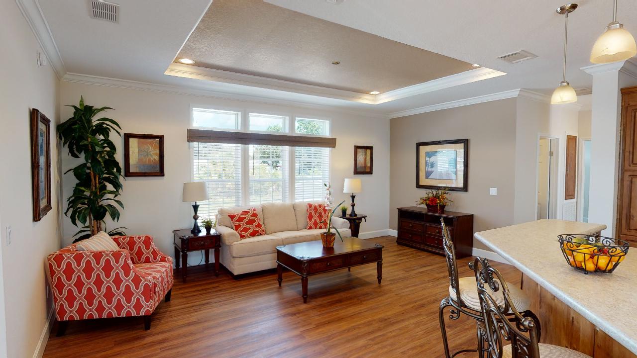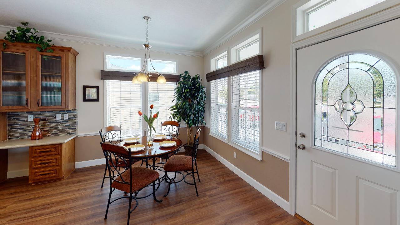 Elegant, off-set inviting covered porch entry into the open concept floor plan, crown molding with an abundance of large windows, showcasing natural, LED recessed lighting, a 5-arm chandelier, and a beautiful tower vault ceiling accent. Enjoy entertaining and/or cooking in the beautiful stainless-steel kitchen, (featuring GE appliances) extra-large center island workstation/breakfast bar, desirable countertop space and custom wood cabinets (42”), surrounded by a panoramic modern tile glass deco backsplash.